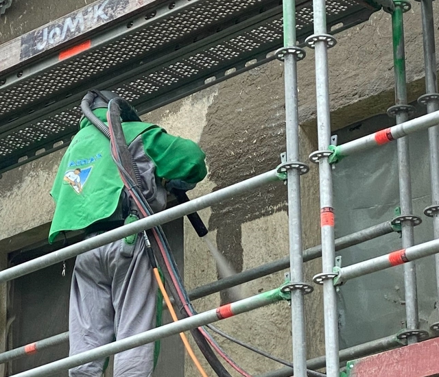 Of het nu gaat om het reinigen van gevels, verwijderen van oude coatings of voorbereiden van grote oppervlakken voor nieuwe afwerkingen — wij leveren kwaliteit, efficiëntie en een perfect eindresultaat.
